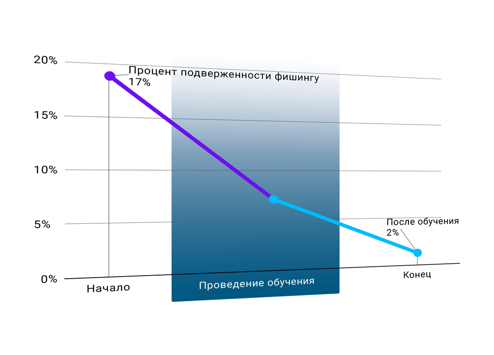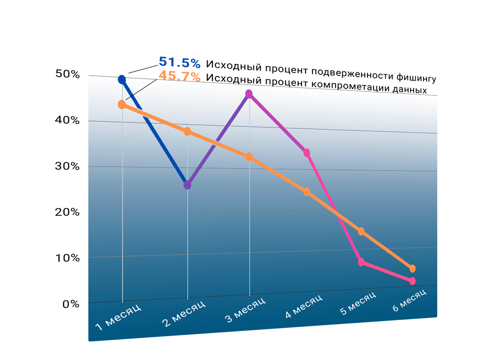 Снижение попадаемости сотрудников в 10-25 раз по итогам годовой программы за счет методологии обучения